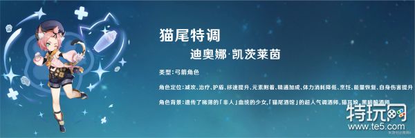 迪奥娜是一位冰元素辅助角色,能为队友提供护盾并兼具治疗能力,同时可提供大量的元素微粒,化身队伍中的充电宝,适用于双冰配队中的兼具辅助与治疗位,为队友提供保护与充能循环,是实用性非常强的猫猫,自身元素爆发需要80能量,所以需要注意提升一下充能能力。
