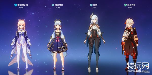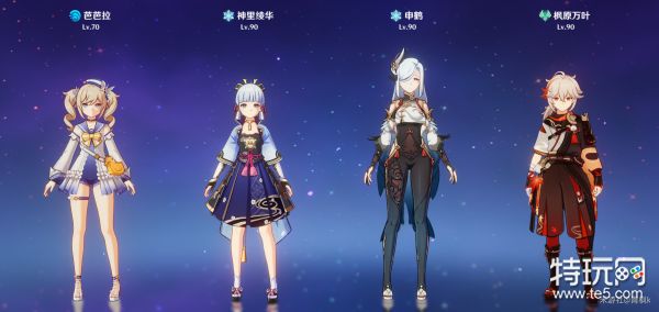 1.芭芭拉+神里绫华+万叶/砂糖+申鹤/罗莎莉亚