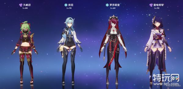 1.久岐忍+优菈+罗莎莉亚+雷电将军/钟离