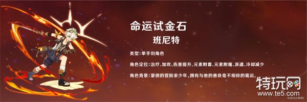 元素战技热情过载:分为点按和长按两种释放形式,长按又分为一段蓄力和二段蓄力,点按冷却时间是5秒,通常通过点按的方式快速恢复大招充能;一段蓄力冷却7.5秒,发动一次二段攻击造成火伤并击飞敌人;二段蓄力冷却10秒,发动一次三段攻击,与前面二段相同的攻击形式,最后一击班尼特会跃起击向地面将敌人和自己同时击飞,班尼特不会受伤,通过突破角色天赋在领域内不会被击飞,不过通常不会用到长按的。