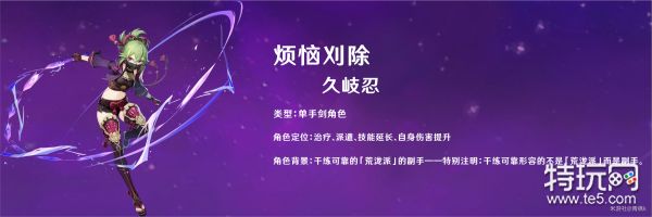 配队建议:久岐忍+夜兰/行秋/神里绫人+纳西妲/草主/艾尔海森+随便