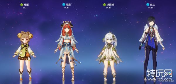 1.瑶瑶+妮露+纳西妲+心海/行秋/夜兰