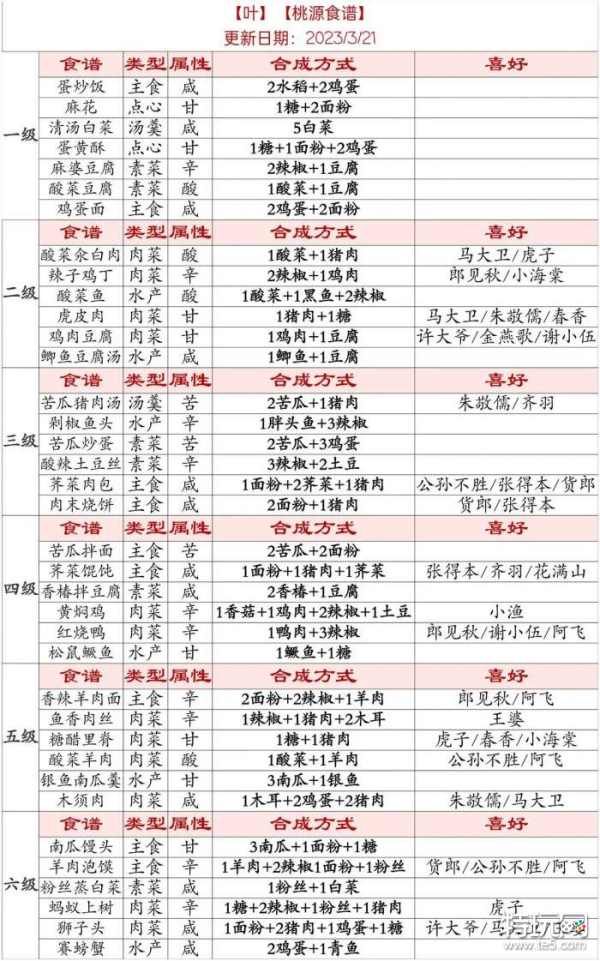 以上就是小编为大家带来的桃源深处有人家村民喜好桃源菜谱一览,快去游戏中兑换吧,更多精彩的游戏内容请关注特玩的后续更新哦。