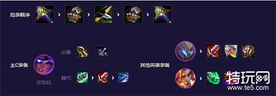 阵容构成:盖伦+猴子+德莱文+厄运小姐+EZ+莎弥拉。前期可以先用莎弥拉和厄运小姐作为C位,后期则可以多补一些五费卡提升输出强度。