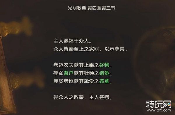 3、进入宅邸后上2楼,找到桌上文件光明教典。