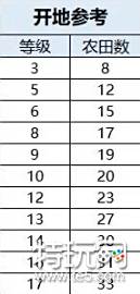 虽然能够开垦的菜地数量不是由等级来决定的,但是在到达一定等级后应该获得的舒适度和菜地数量是可以参考的: