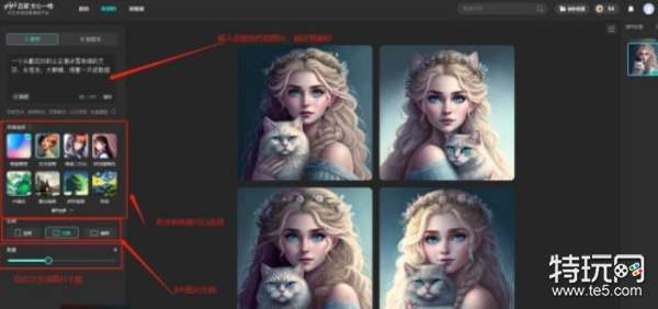 比如,我的创作的,描述她的头发,眼睛,画风等。然后还可以选择图片的画风,比例,以及生成的图片个数。