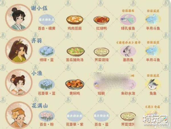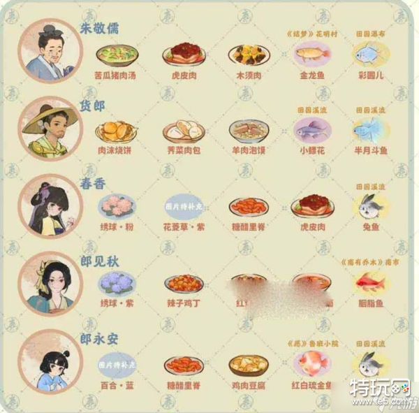 以上就是小编为大家带来的《桃源深处有人家》村民喜好一览的全部内容,还想了解更多关于桃源深处有人家攻略的小伙伴就来特玩攻略看看吧!看完你就知道了,希望能对大家有所帮助。