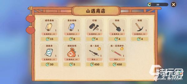 在获取到足够多的青田玉坠之后我们就可以前往山遇商店进行兑换了,会有很多常见的物资例如锤头、螺钉之类的,还有建筑卷轴,不过每一期可以兑换的数量都是有限的,玩家们要抓住机会。