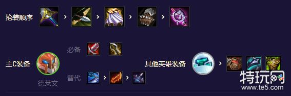 德莱文:饮血必备,科技枪跟正义都代替不了饮血的护盾效果,德莱文高血量饮血的盾很厚。然后尽量做无尽提升爆发,第三件羊刀轻语巨杀都行,看外面情况出,有啥做啥,飞天德莱文直接杀后排,其实没那么需要轻语,如果外面斗士多3星多可以优先一点巨杀。然后就做机器人的防装,一切防装都行,龙牙,反甲,狂徒,救赎,冰甲,石像鬼等,有啥做啥。