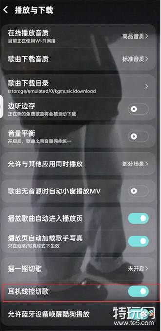 4.最后在播放与下载的页面中开启耳机线控切歌即可;