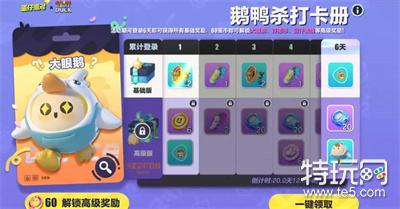 3、第三款皮肤【大眼鹅】需要购买鹅鸭杀打卡册,并且每日连续登录获取奖励,连续登录6天即可解锁这款皮肤了。