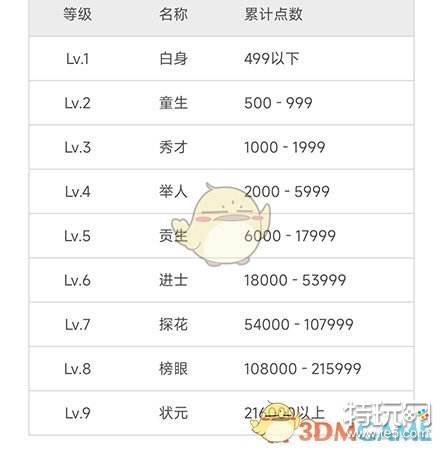 3、最后就可以看到每一个等级所需要的学习力点数了。