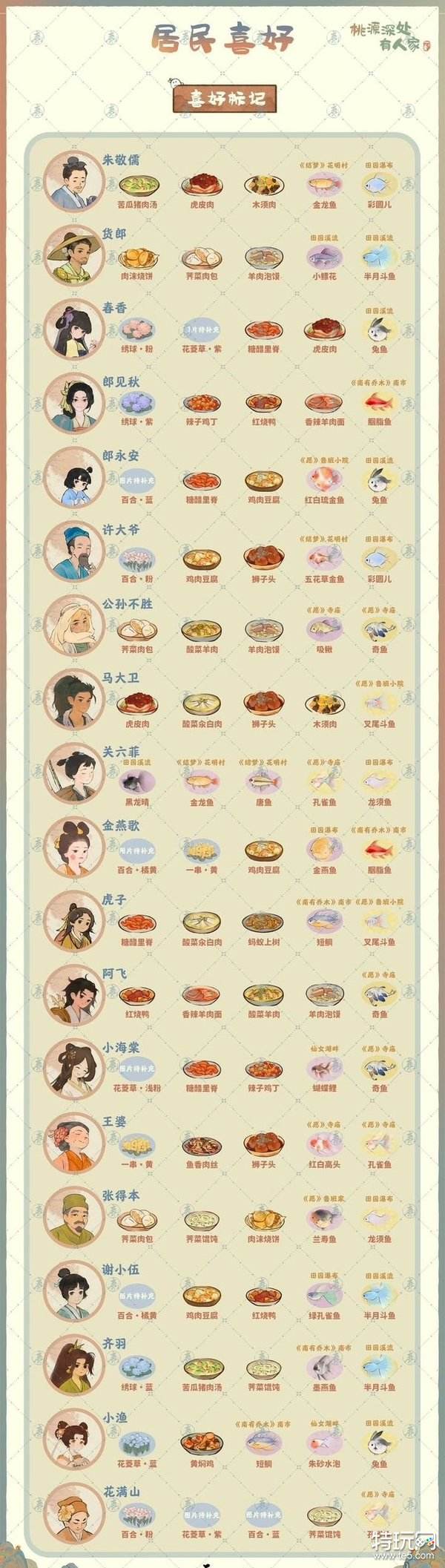 以上就是桃源深处有人家村民喜好大全 桃源深处有人家村民喜好食物最新的详细内容啦,更多消息和内容关注特玩网,之后会持续给大家带来更多全新的内容。
