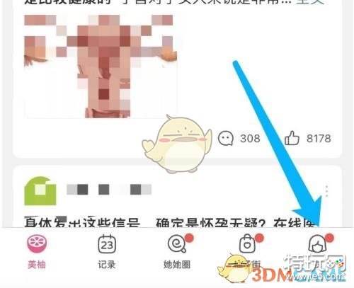 1、打开美柚app,在主页面点击我的选项。