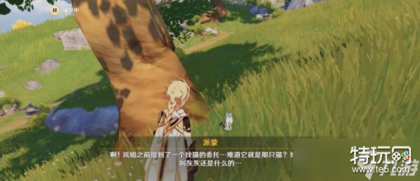 2、打倒丘丘岩盔王,在树下找到灰灰,与其对话;