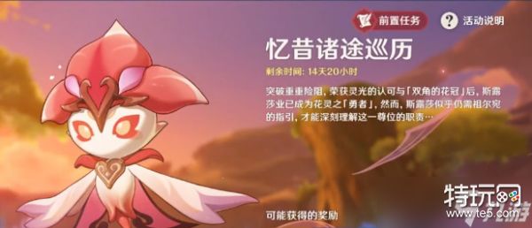 1、想要获得花灵斯露莎,需要完成活动【忆昔诸途巡历】的前置任务【彼时满天异彩】,新花灵斯露莎限定在新地图范围使用,也就是说在其他地区无效哦。