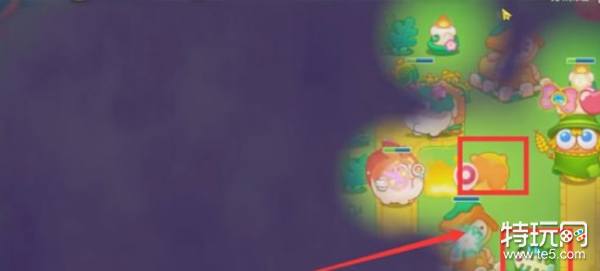 1.开局在下图位置建造一个蝴蝶炮塔和鱼骨刺,并锁定箭头标注的建筑物;