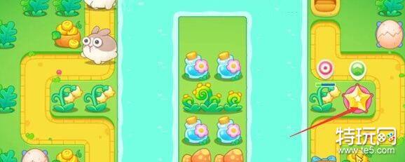 3、将箭头所示处放置一个星星塔并升至满级,星星塔可对后面出现的飞行兔子造成有效的输出。