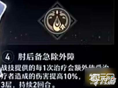 战技提供的每1次治疗,会额外使受治疗者增伤10%,最多叠加3层,持续2回合。