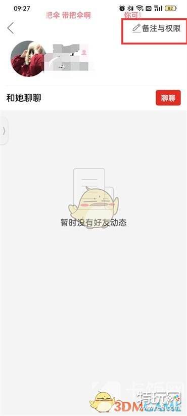 4、来到好友的的页面中点击右上角的【备注与权限】;