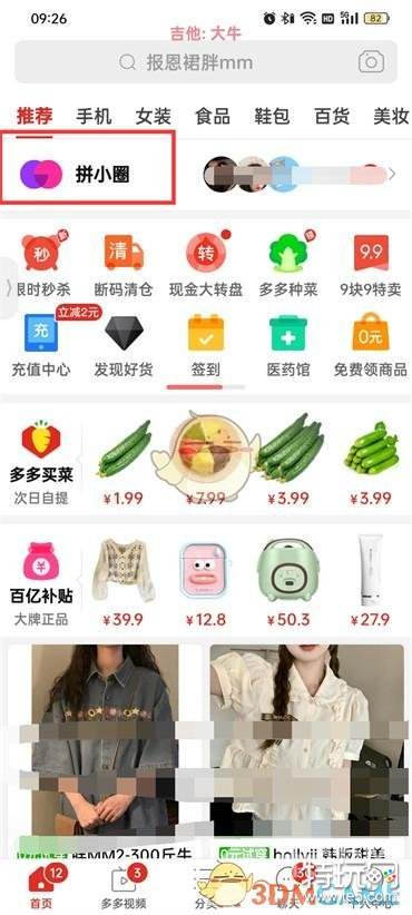 1、首先打开拼多多进入到首页之后点击【拼小圈】;