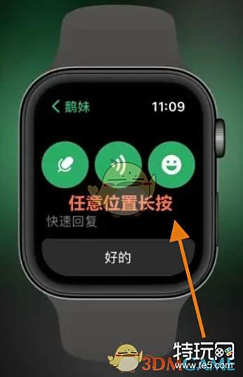 1、打开Applewatch,打开微信,长按任意屏幕位置。
