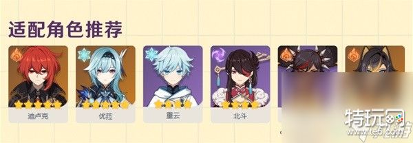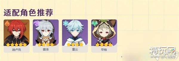 适用角色推荐:迪卢克、雷泽、重云、早柚