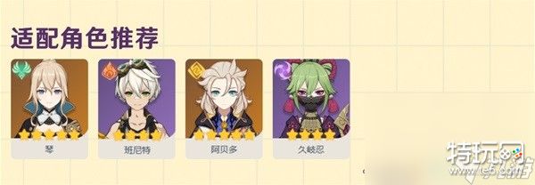 适用角色推荐:温迪、菲谢尔、提纳里