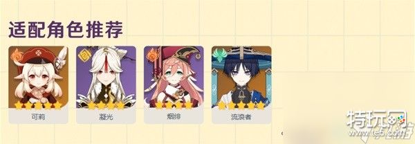 适用角色推荐:可莉、凝光、烟绯、流浪者