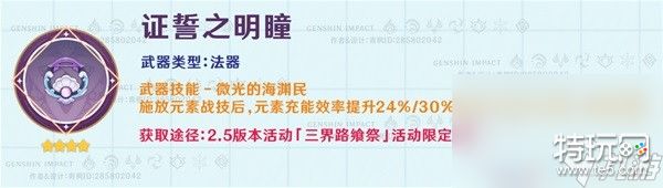 曾经的班尼特不错的辅助神器,提供充能和攻击力加成,辅助同时也能稍微兼顾输出,现在不如原木刀了;