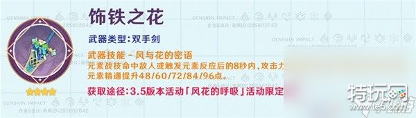 最近的版本活动武器,风花节装饰的大剑,有不错的泛用性,可同时提供精通和伤害加成;