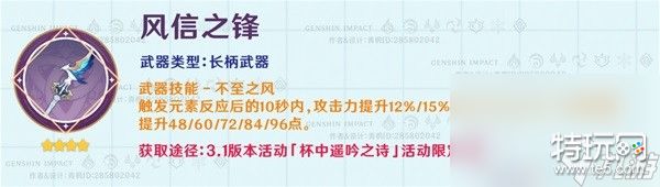 外形像是蒙德城的一杆路标,是一把加攻的特化武器,对长柄武器角色来说效果几乎全覆盖;