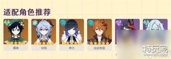 适用角色推荐:温迪、甘雨、夜兰、达达利亚、九条裟罗、珐露珊