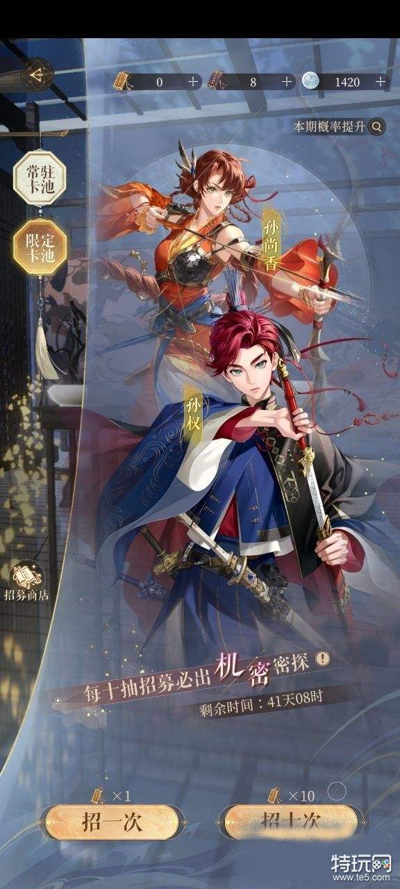 偶尔还会开放限定卡池,一般是包含2个up角色,比如说目前up的孙尚香和孙权,2个都是火属性的。up池里综合SSR的概率还是3%,只不过up角色概率提到了1.2%,相信的其他SSR的概率就只有0.06%,所以抽到目标SSR角色概率还是高的。