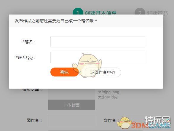 2、而且在投稿之前,用户还需要给自己取一个笔名,并且填写常用的QQ号码,方便编辑来联系自己。