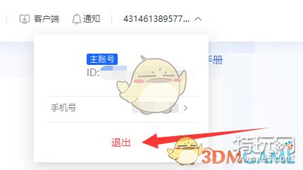 2、点开后会显示账号信息,直接点击最下面的红字“退出”
