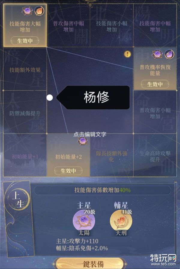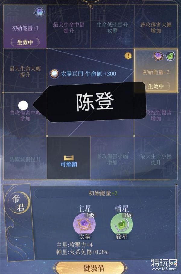 命盘的话最重要的是陈登要洗出两个命盘,能量+1和+2的,这样就算不是队长也可以开局放大。