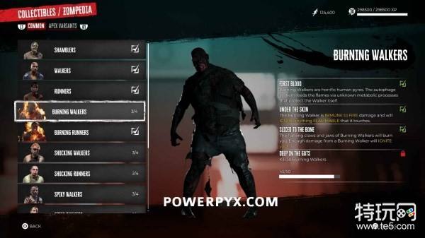 所有的丧尸都不用担心漏掉,通关主线后可以返回任意区域补漏。解锁奖杯或成就只需要击败每种丧尸1次,无需完成丧尸百科中列出的所有挑战。所有丧尸都会在主线任务、支线和失物招领任务期间出现,任务目标会涵盖到所有类型的丧尸,因此只要完成所有任务就不用再多花时间去找任何种类的丧尸。