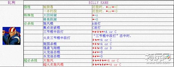 以上便是小编为大家带来的拳皇98比利·凯恩出招表的所有内容了,希望可以帮助到大家更好的使用比利·凯恩这个角色。