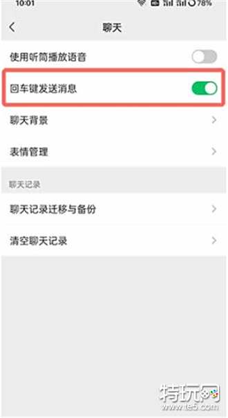 4、随后在聊天设置中点击开启【回车键发送消息】设置,开启该功能即可用回车键发送消息;