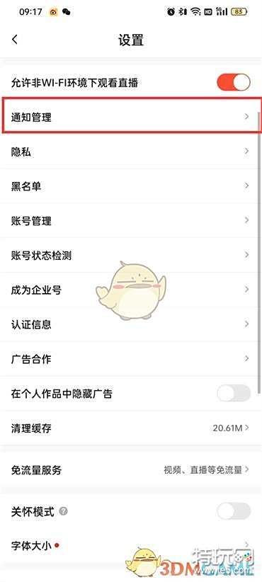 3、点击通知管理。