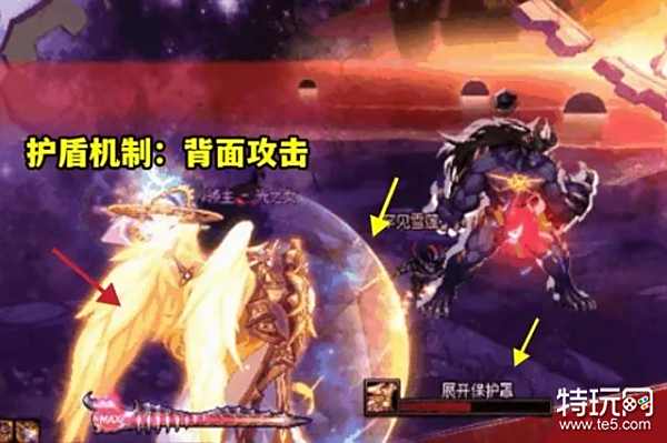 读条“展开保护罩”机制,Boss会持盾直线移动,召唤玩家分身。特别注意,只能背面攻击,不要正面打,否则会召唤大量的玩家分身。