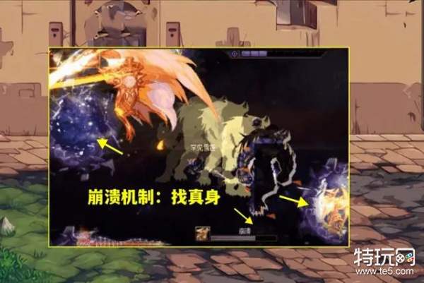 读条“崩溃”机制,Boss无敌,出现4个裂缝,用“平X”打碎裂缝,找到有Boss的裂缝,然后进入,清除掉里面所有的分身,即可完成机制。