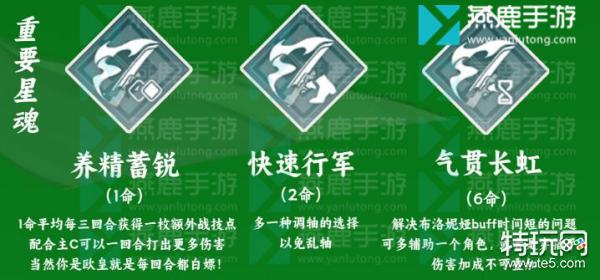 6魂:解决buff时间短的问题。能够多辅助一个角色或穿插平A,伤害加成不可叠加。