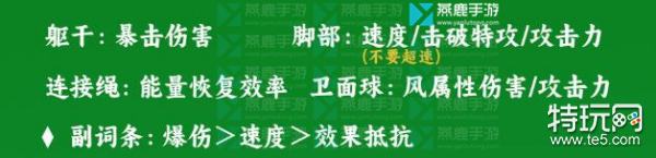 脚部:速度/击破特攻/攻击力(注意不要超速)