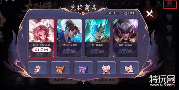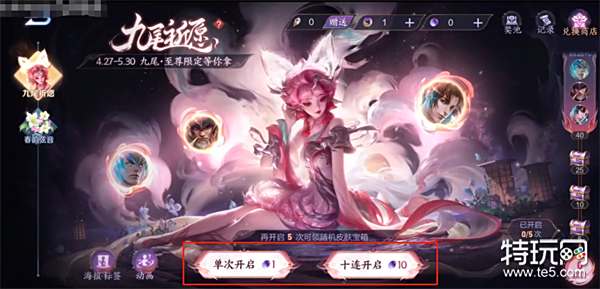 在九尾祈愿活动中,分别有妲己青丘九尾、孙悟空至尊宝、铠青龙志、苏烈玄武志这四款限定皮肤,还有很多随机皮肤。