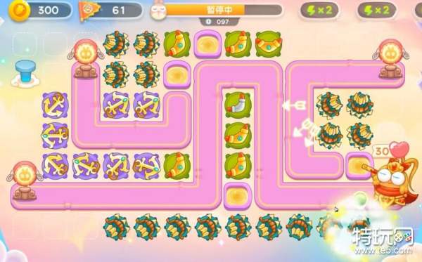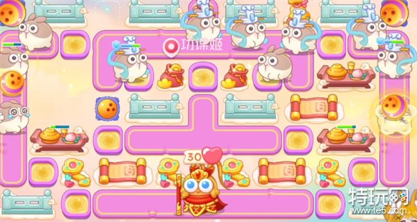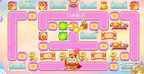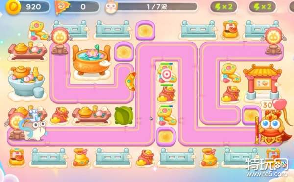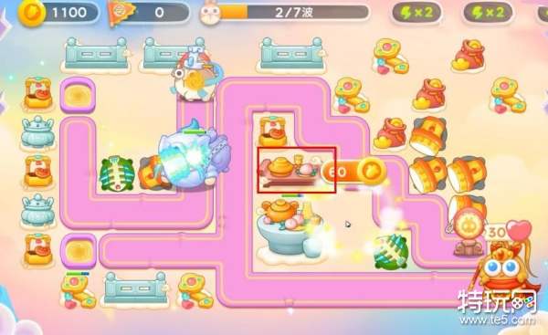 4、大家建造房防御塔的时,记得一定要暂停,不然的话是特别容易漏怪的,有金币后继续在左上角补一个保龄球,直至钱袋打完;