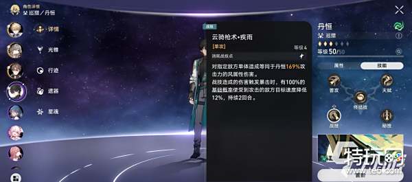 第一点角色战技,造成的伤害如果打出暴击了,就可以让敌方目标降低12%的移速,搭配上额外被动技能,下次攻击减速目标伤害提升40%;终结技的效果也会因为减速而提升,获得更高倍率的伤害;丹恒每次出手都有50%的概率提升自己20%的速度。丹恒自身是比较脆的,当他生命值低于50%的时候,被敌方攻击的概率会大大降低,这也为丹恒提供了更加安全的输出空间。