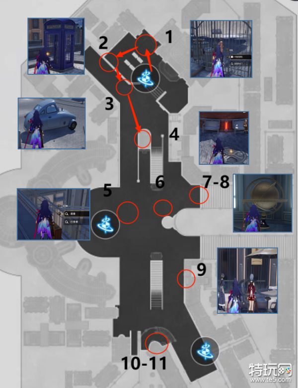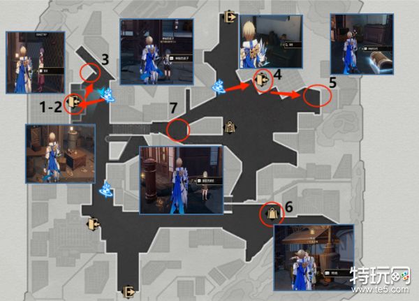 7-8号点守护者的办公桌上有个调查点,调查后即可获得20调查点加一个配方。办公桌右前方的星球仪,选项顺序分别是1142,调查后即可获得20冬城盾加一个成就。